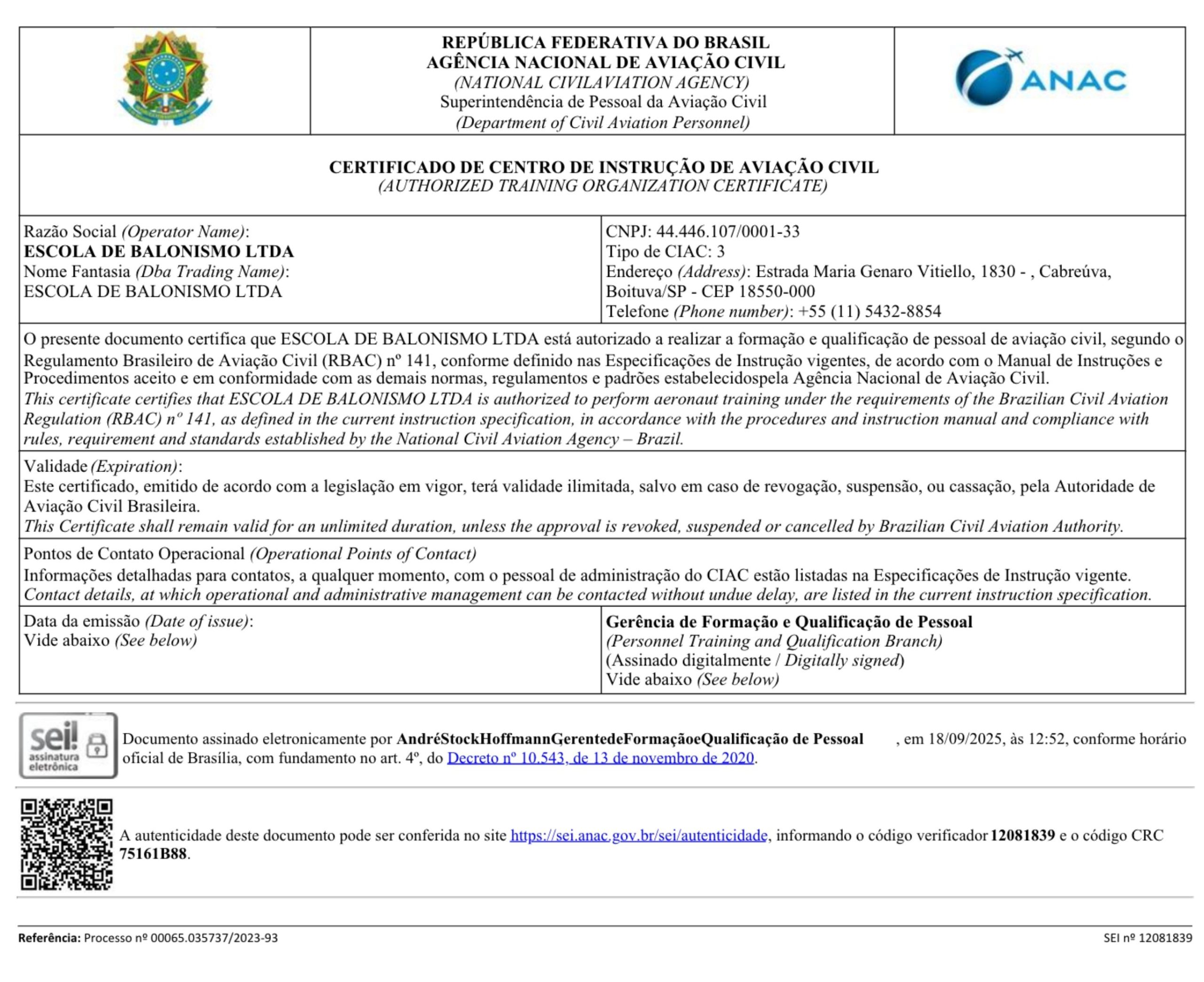 Única empresa com instrutor no Ranking FAI (Federação Internacional de Aerostato)